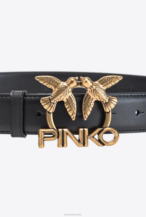 појасеви | Pinko црно-античко злато кожни каиш са логотипом љубавних птица JFH4974