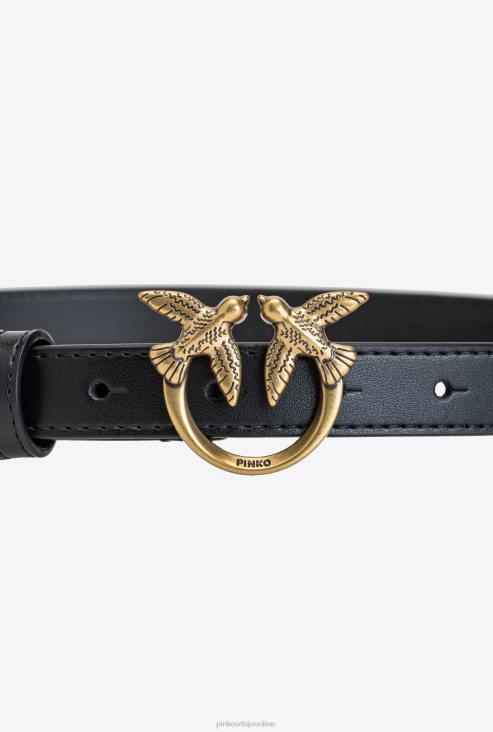 појасеви | Pinko црно-античко злато љубавне птице танки кожни каиш JFH41028