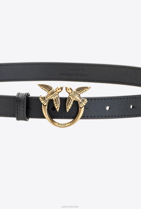 појасеви | Pinko црно-античко злато љубавне птице танки кожни каиш JFH41032