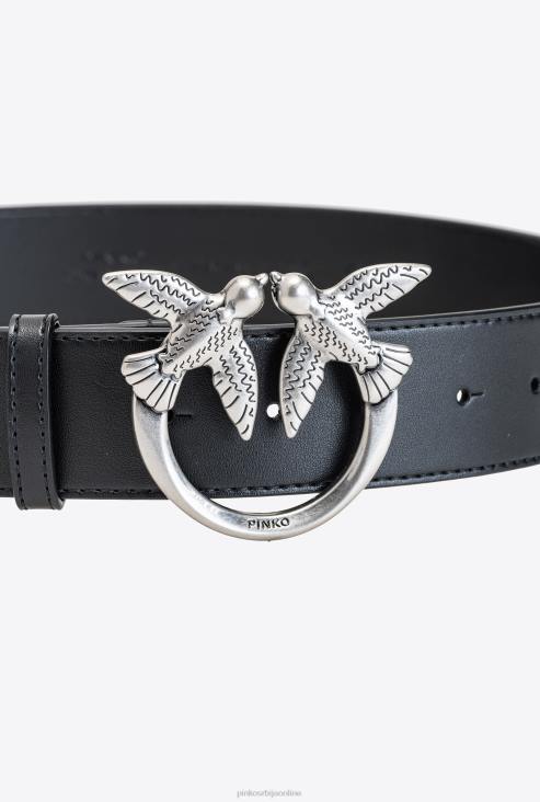 појасеви | Pinko црно-старо сребро кожни каиш од љубавних птица JFH4995