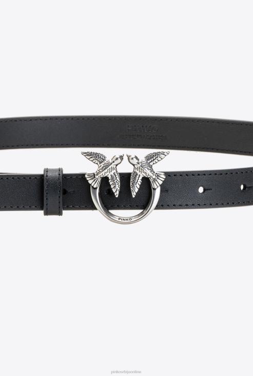 појасеви | Pinko црно-старо сребро љубавне птице танки кожни каиш JFH41038