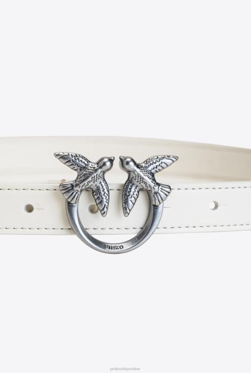 појасеви | Pinko бело-старо сребро љубавне птице танки кожни каиш JFH41026