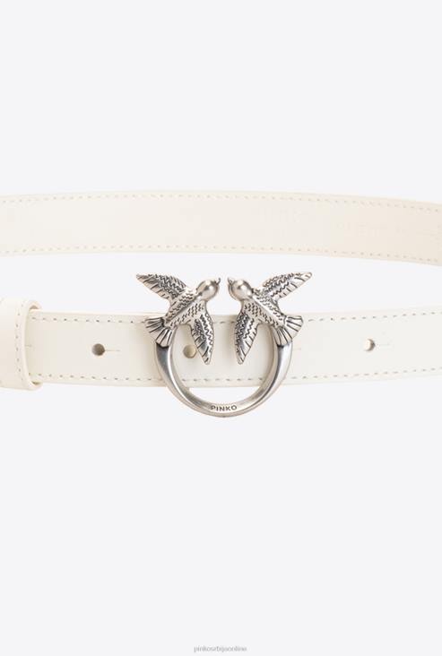 појасеви | Pinko г. маросо беж-старо сребро љубавне птице танки кожни каиш JFH41033