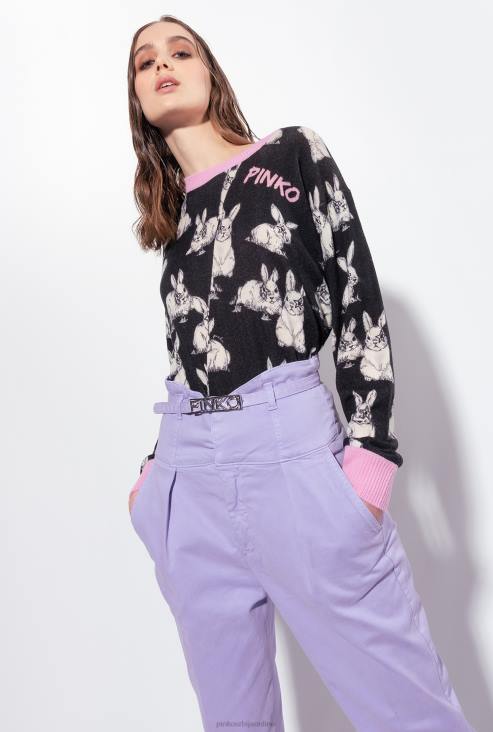 мекани пуловер од чисте вуне са мотивом зеца. ребрасте манжетне контрастне боје и округли врат. - модел је висок 175 цм и носи величину 40.