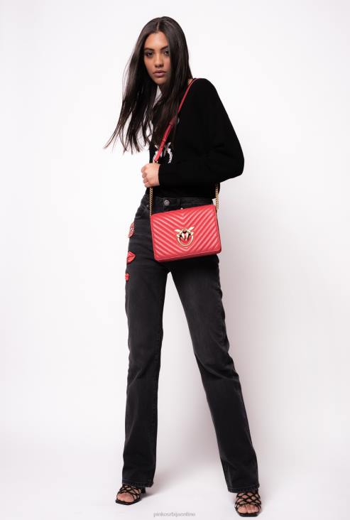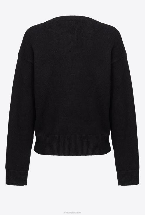 пуловер дугих рукава од 100% чисте вуне, са уметком са розе логотипом и детаљима заљубљених птица у средини. ребрасти поруб, манжетне и округли врат.