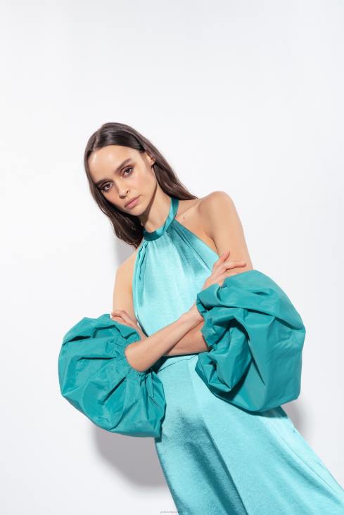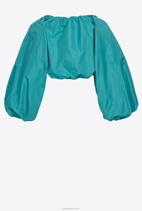 тафт слеже раменима са дугим пуф рукавима. еластична облога.