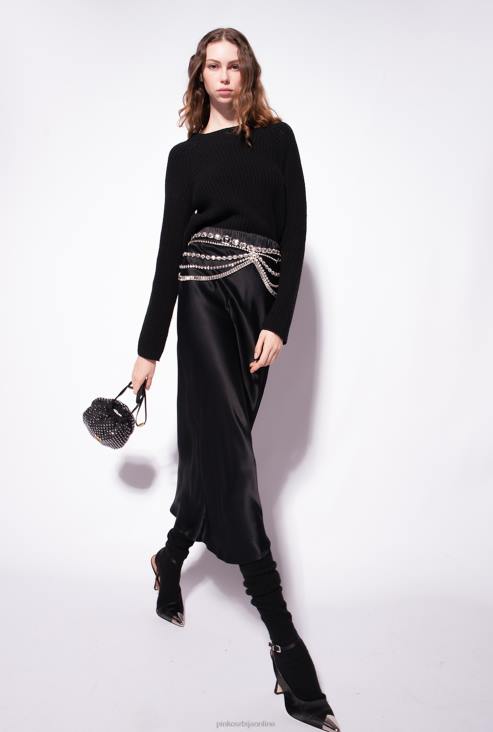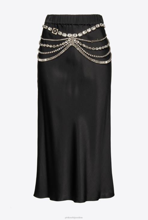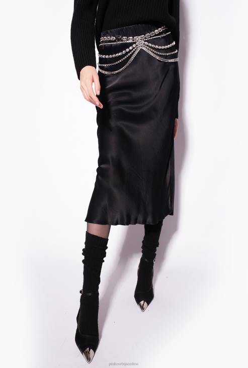 сукње до средине теле | Pinko лимузина црна сатенска сукња са појасом од драгуља JFH4923