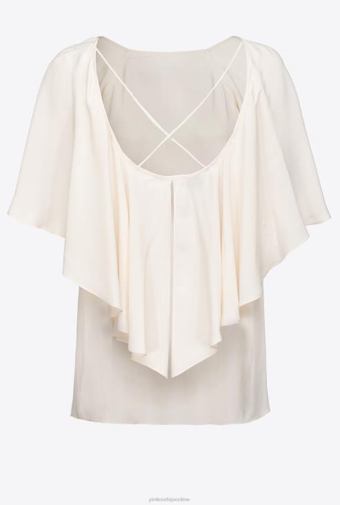 блуза од креп де шина од мешавине свиле са чамцем и отвореним леђима са укрштеним нараменицама. равно резани комад са кратким драпираним рукавима са ефектом огртача који се протежу у велики волан на леђима. овај комад је направљен од материјала - сертификованог у целом производном ланцу - из шума којима се газдује у складу са принципима одрживости. - модел је висок 177 цм и носи величину 40.