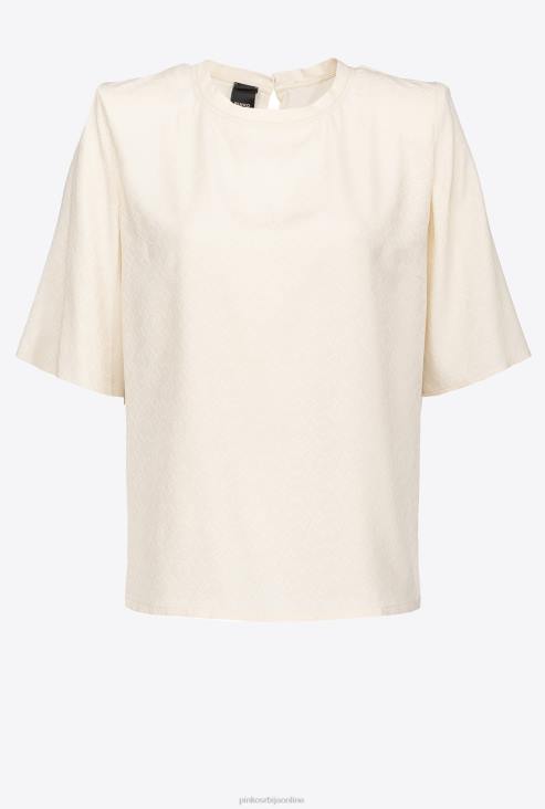 блузе | Pinko ружичасти дим бели жакардна блуза кратких рукава JFH4258