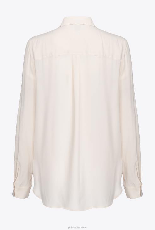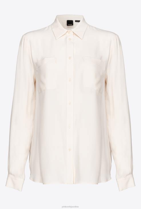 блузе | Pinko ружичасти дим бели свилена кошуља са џепом на грудима JFH4241