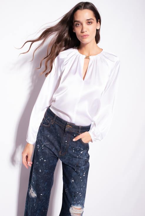 блузе | Pinko светло бела растезљива сатенска блуза дугих рукава JFH4303