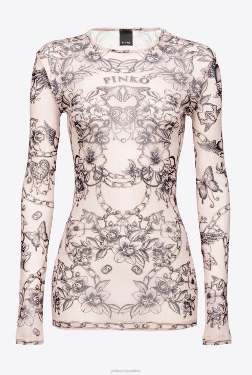 горњи део од растезљивог тила дугих рукава са таттоо принтом. уклопљени комад са округлим вратом.