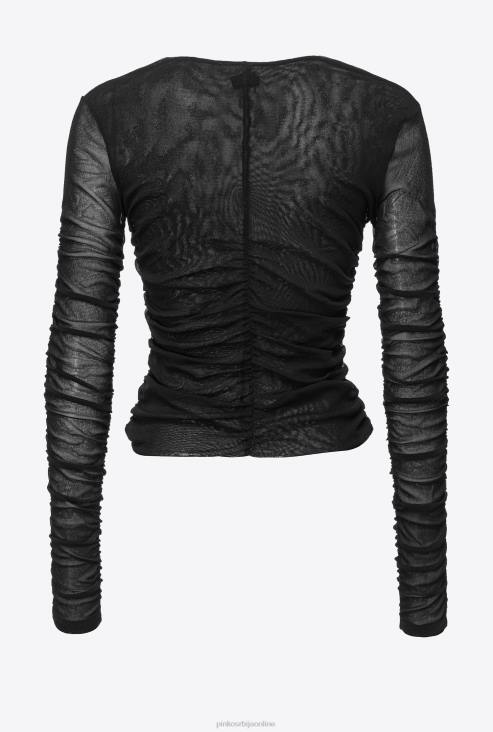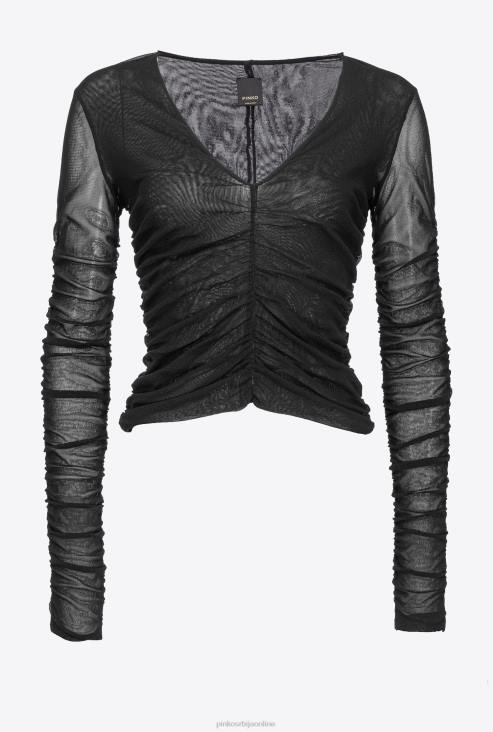 џемпер са в-изрезом дугих рукава од полупровидног растезљивог тила са детаљима са драпираним детаљима.