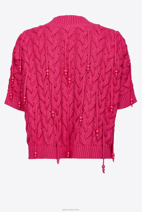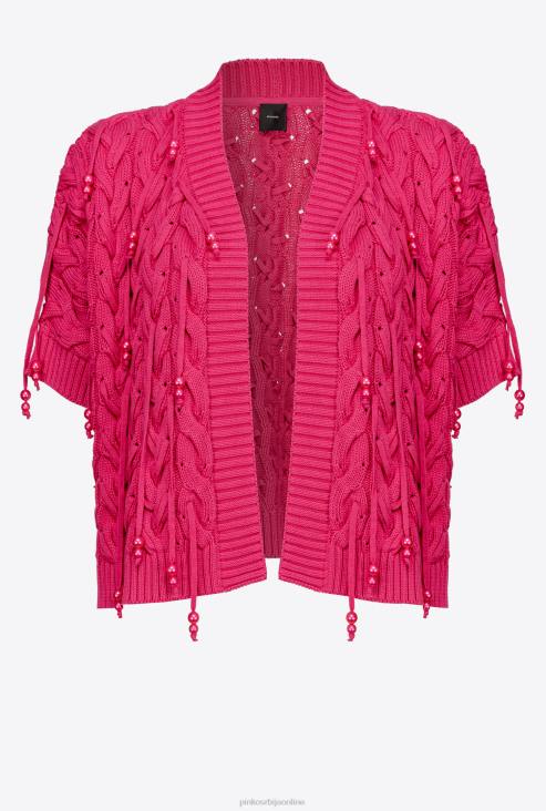 џемпери | Pinko црвена малина отворени кардиган са детаљима од перли JFH4415