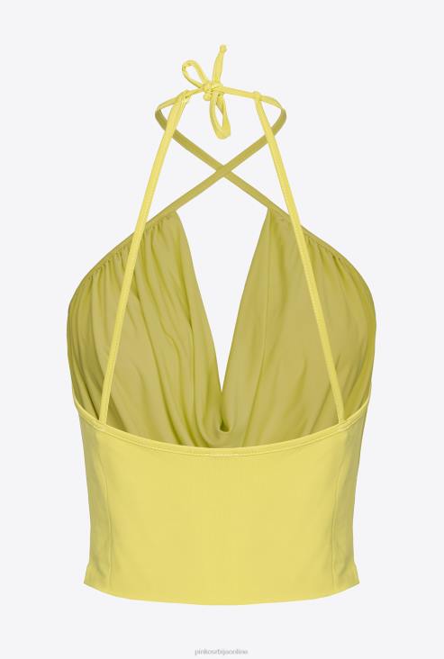 Цроп топ без рукава од растезљивог вискозног дреса са драпираним флуидним ефектом. слим крој са драпирањем напред и отвореним леђима са каишевима, закопчавањем иза врата.