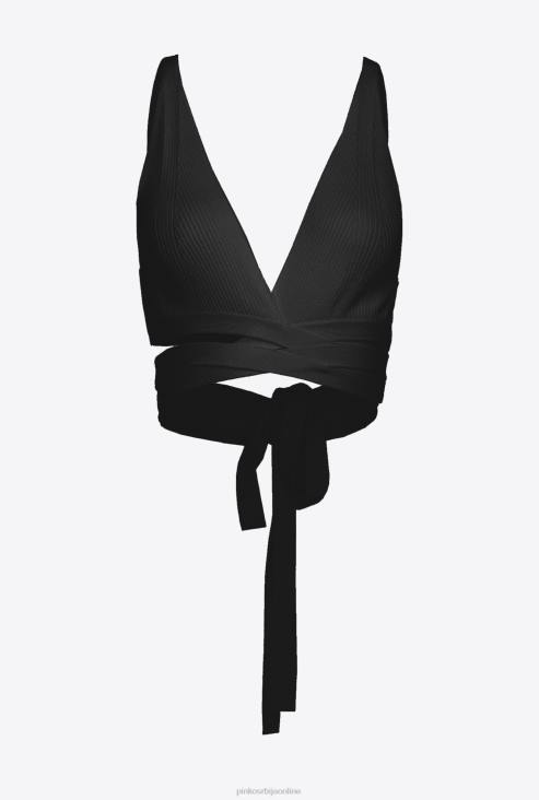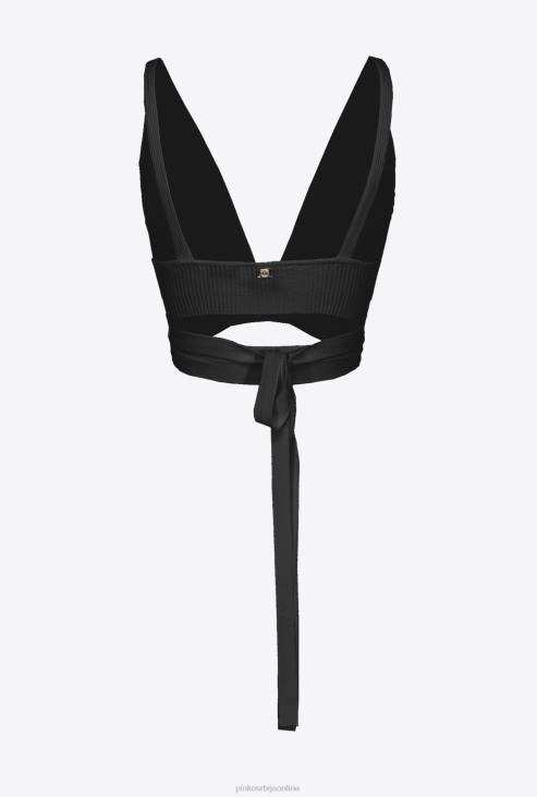 бралетте горњи део од растезљивог вискозног крепа са ребрастим плетењем. дубок В-изрез напред, раван изрез позади и плакета прилагођена логотипом љубавних птица. дуге везице на дну. - модел је висок 175 цм и носи величину 40.