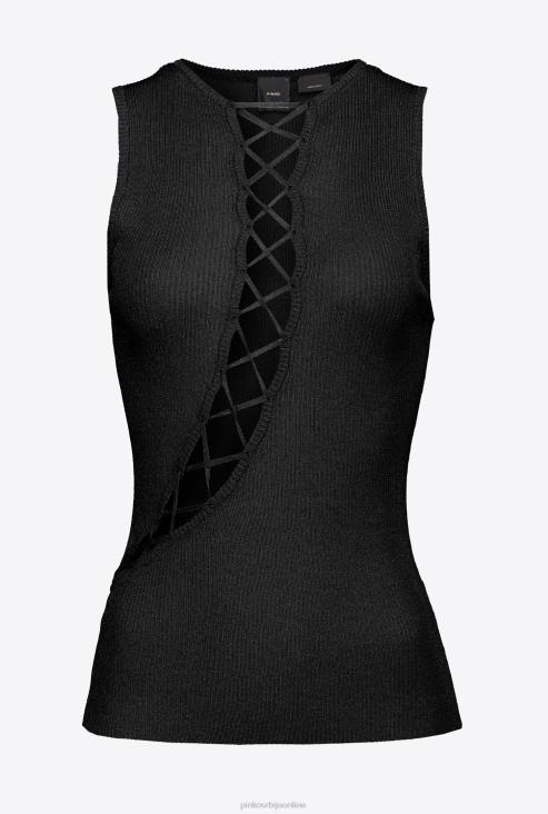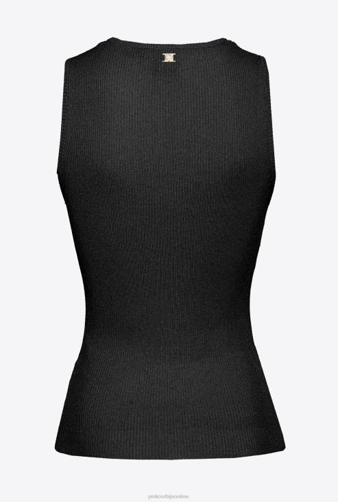 врх | Pinko лимузина црна плетени топ од лурекса са укрштеним детаљима JFH4457