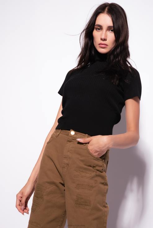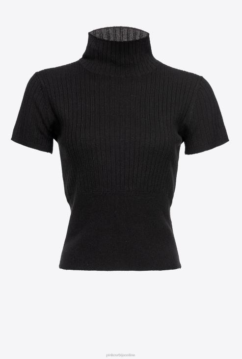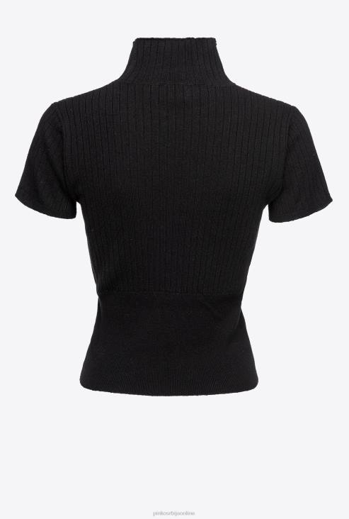 врх | Pinko лимузина црна ребрасти врх кратких рукава JFH4484
