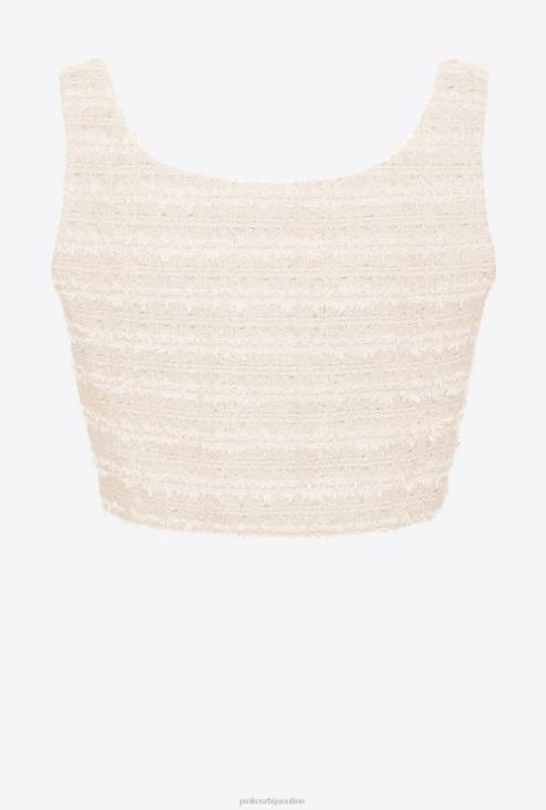 врх | Pinko ружичасти дим бели кроп топ од твида са узорком JFH4322