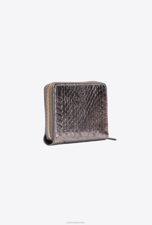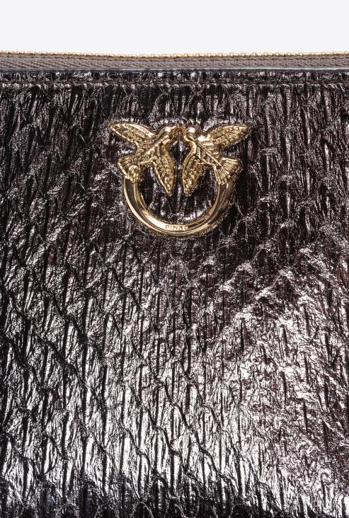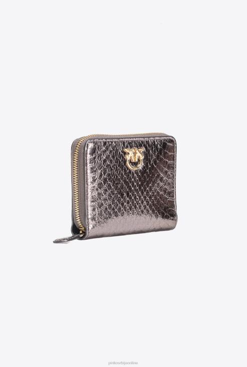 торбице | Pinko метално сиво-сјајно злато галлериа торбица са патент затварачем од ламиниране коже рептила JFH41173