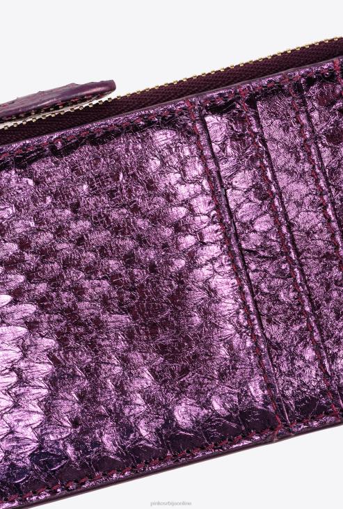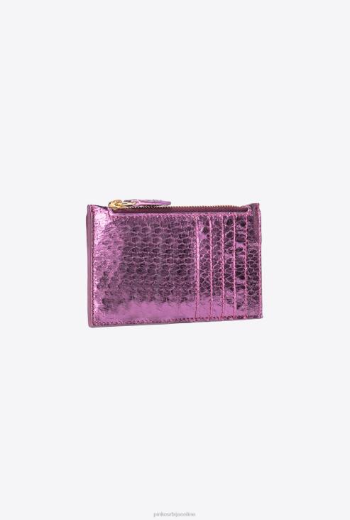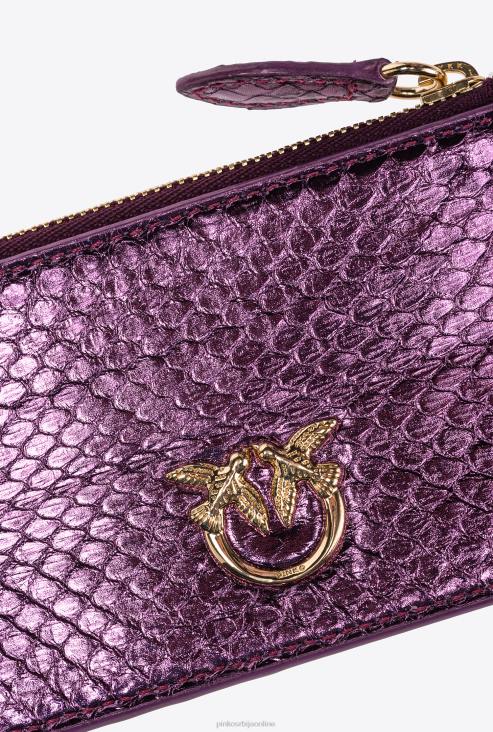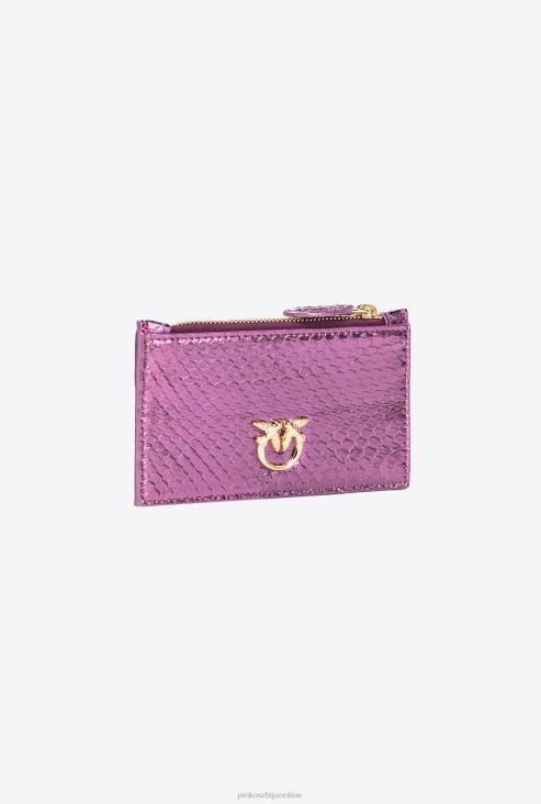 торбице | Pinko љубичасто-сјајно злато галлериа држач картице са патентним затварачем од ламиниране коже рептила JFH41180