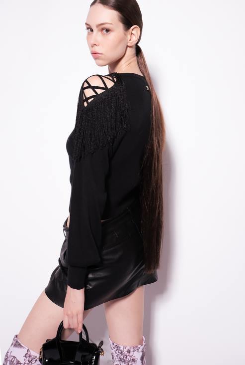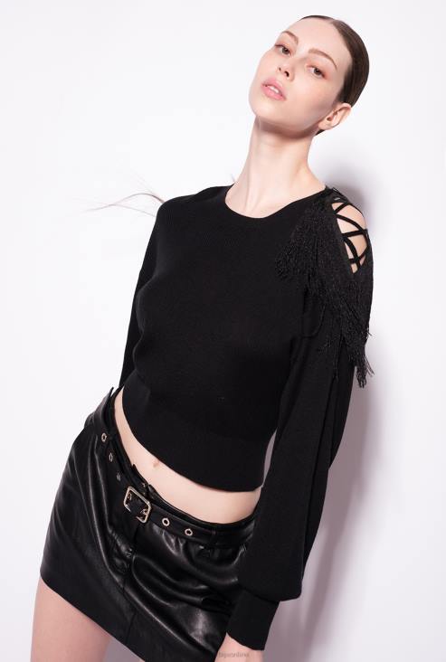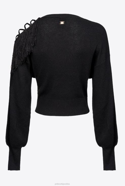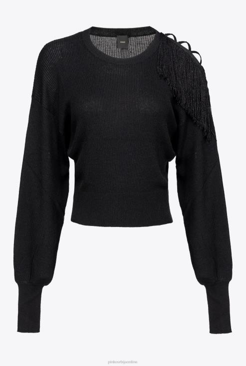 џемпери | Pinko лимузина црна ребрасти пуловер са ресама JFH4506