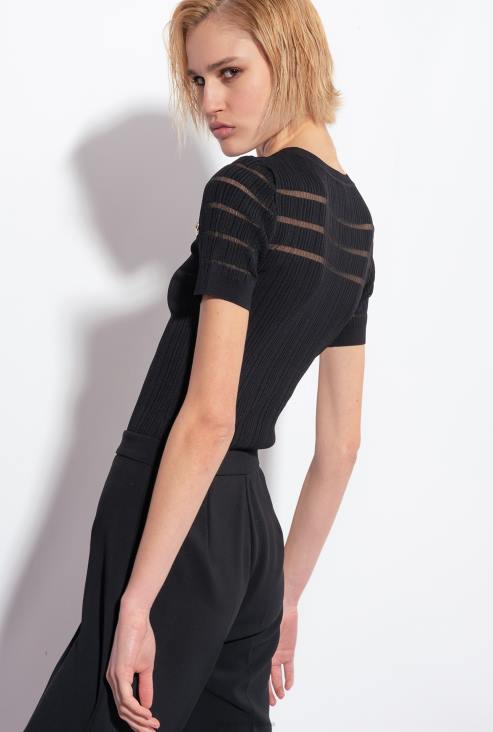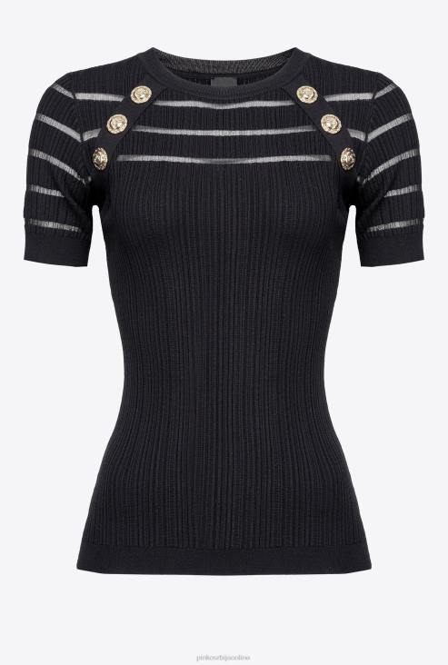 џемпери | Pinko лимузина црна ребрасти џемпер са чистим детаљима JFH4502