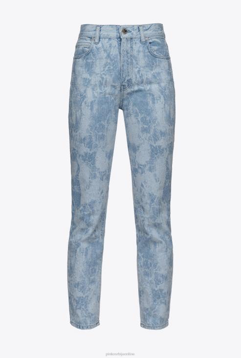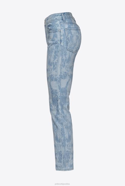 фармерке | Pinko бела/светло плава уске фармерке са мермерним ефектом са штрасом JFH4872