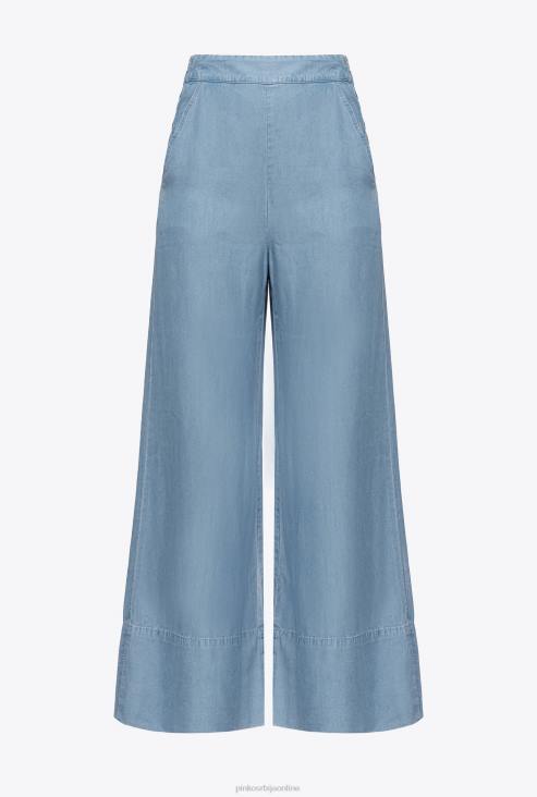 тексас са широким ногавицама и лиоцел фармерке са лаким прањем. висок струк, коси предњи џепови и мали извезени детаљ са розе логотипом на леђима. широке ногавице са ушивеним рубом како би се створио ефекат великих манжета. закопчава се металним бочним патентним затварачем. - модел је висок 178 цм и носи величину 40.