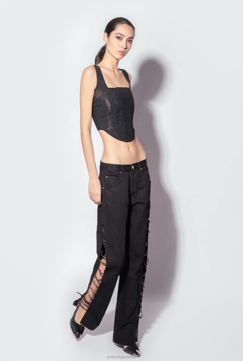 фармерке | Pinko лимузина црна галлериа панталоне са ланчићима од рхинестона JFH4888