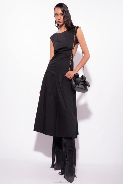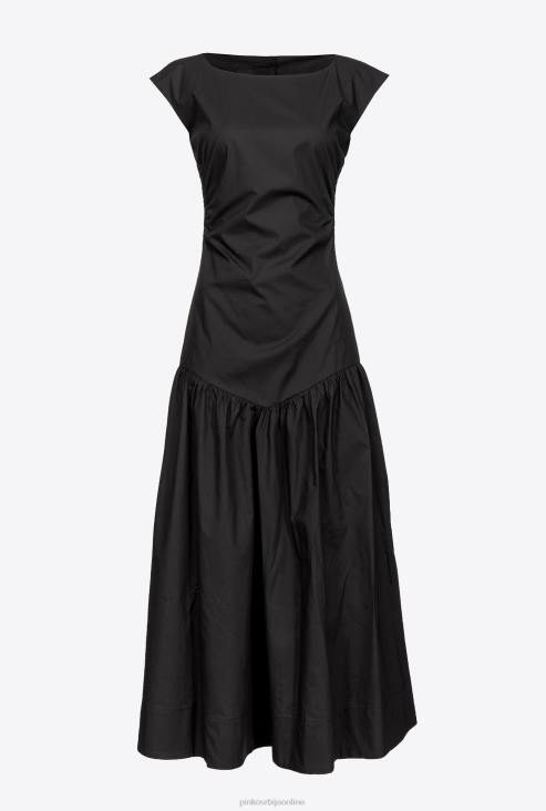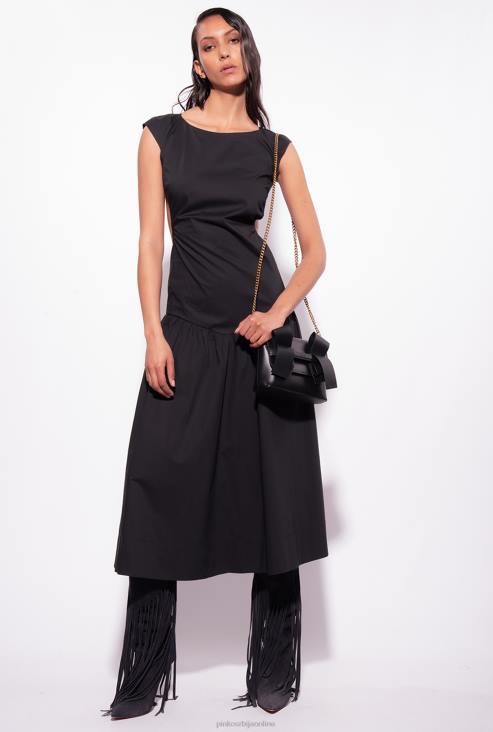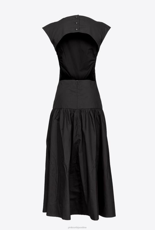 хаљине средње дужине | Pinko лимузина црна хаљина од поплина са отвореним леђима JFH4158
