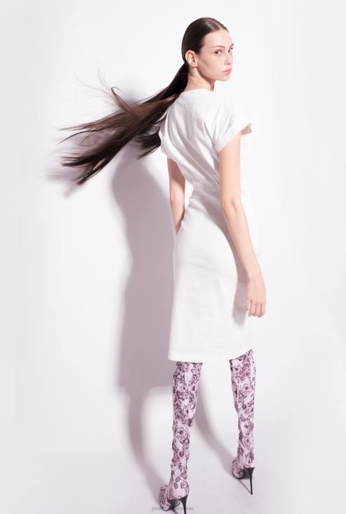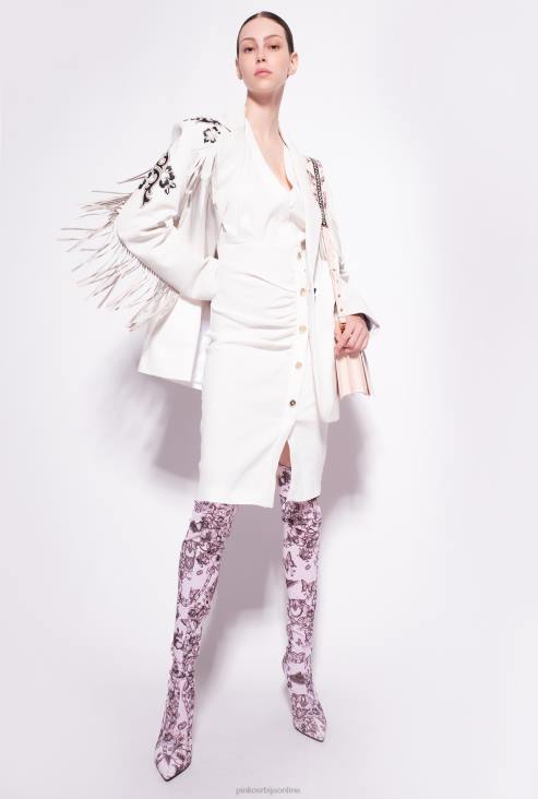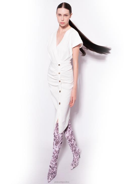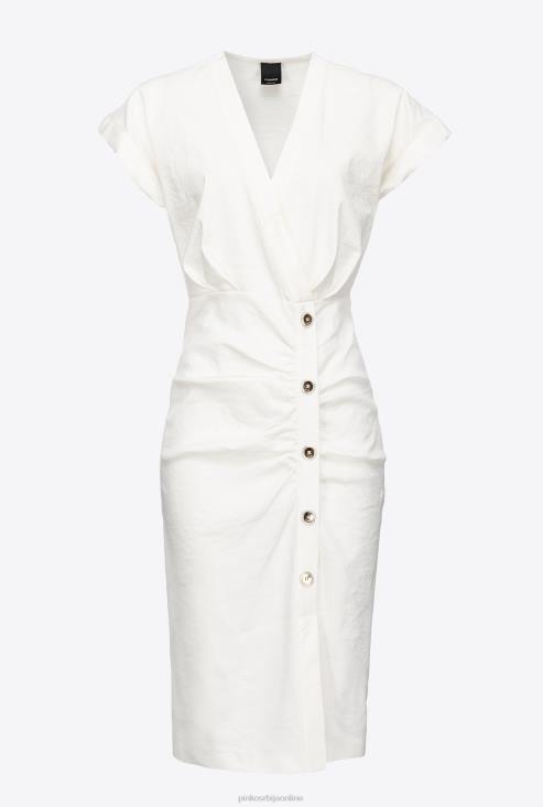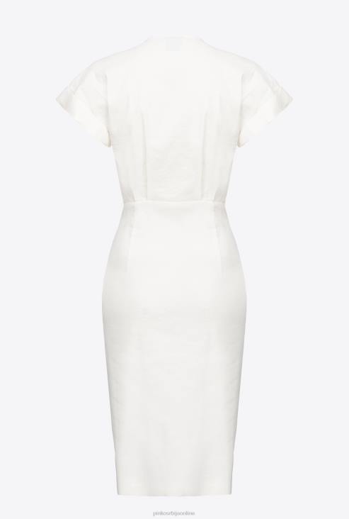 хаљине средње дужине | Pinko облак бео закопчана ланена хаљина JFH487