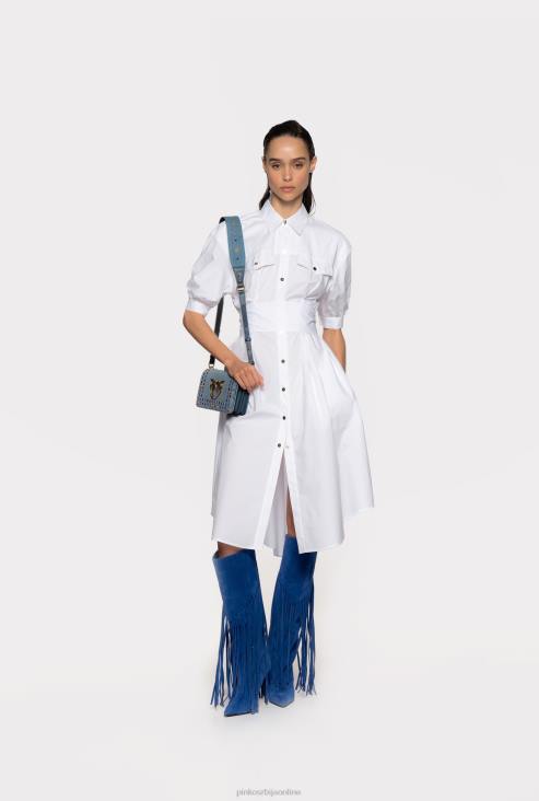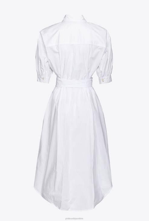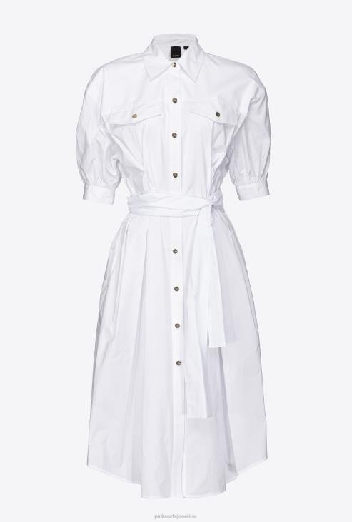 хаљине средње дужине | Pinko светло бела памучна мајица од поплина са појасом JFH441
