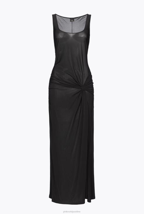 дуге хаљине | Pinko лимузина црна драпед хаљина од дреса са прорезом JFH41