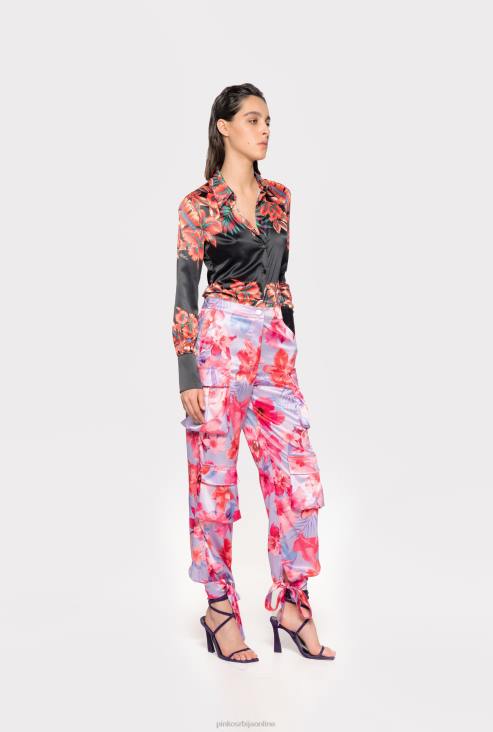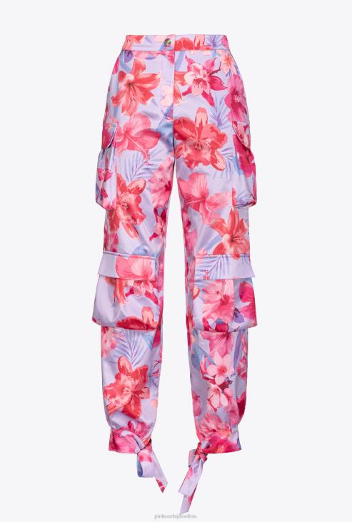 цасуал панталоне | Pinko лила / светло розе / фуксија сатенске карго панталоне са тропским цветним принтом JFH4645