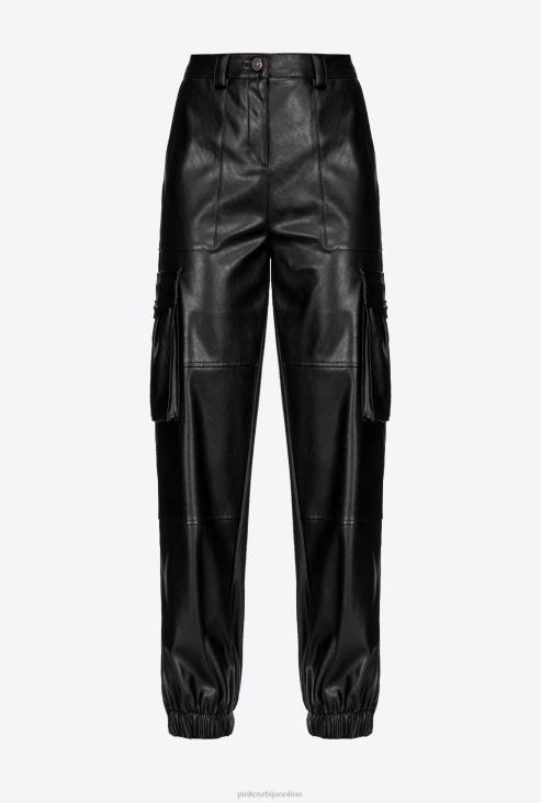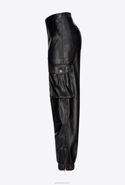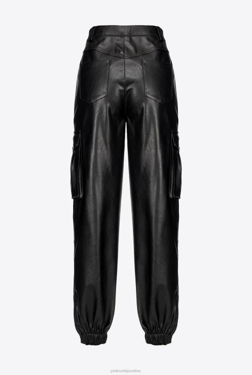 цасуал панталоне | Pinko лимузина црна карго панталоне са изгледом коже JFH4639