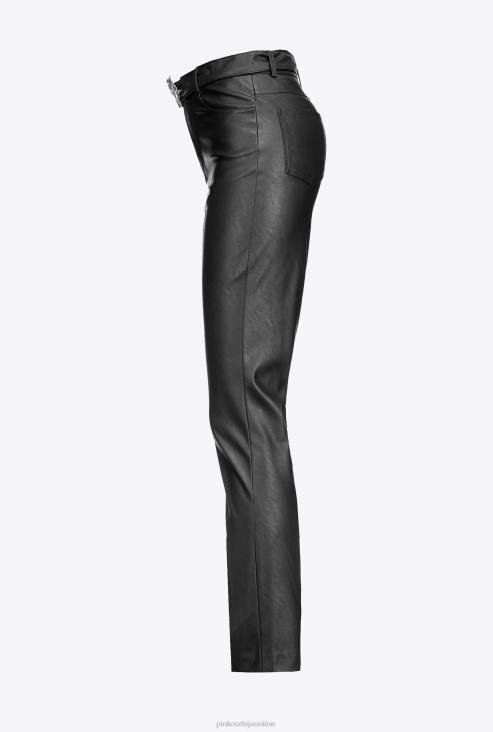 цасуал панталоне | Pinko лимузина црна панталоне са ефектом коже са каишем за љубавне птице JFH4710