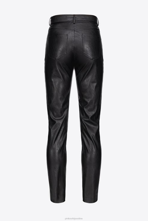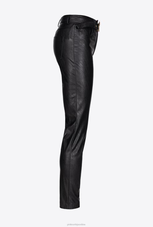 цасуал панталоне | Pinko лимузина црна панталоне са ефектом коже са каишем за љубавне птице JFH4785