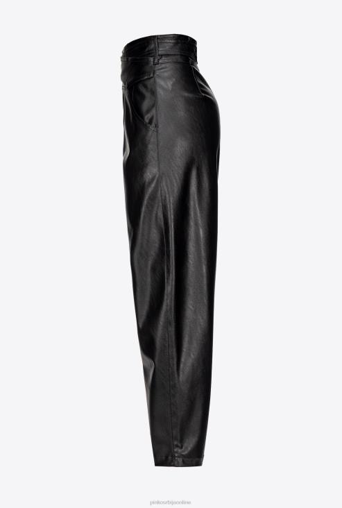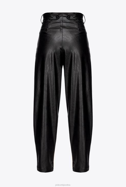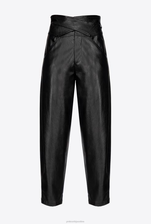 цасуал панталоне | Pinko лимузина црна панталоне са ефектом коже са укрштеним детаљима JFH4765