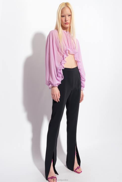 уске панталоне од растегљиве креп тканине. високог струка и танке ногавице са централним прорезом на рубу који ствара ефекат благо проширеног. скривени централни патент затварач на леђима. - модел је висок 175 цм и носи величину 40.