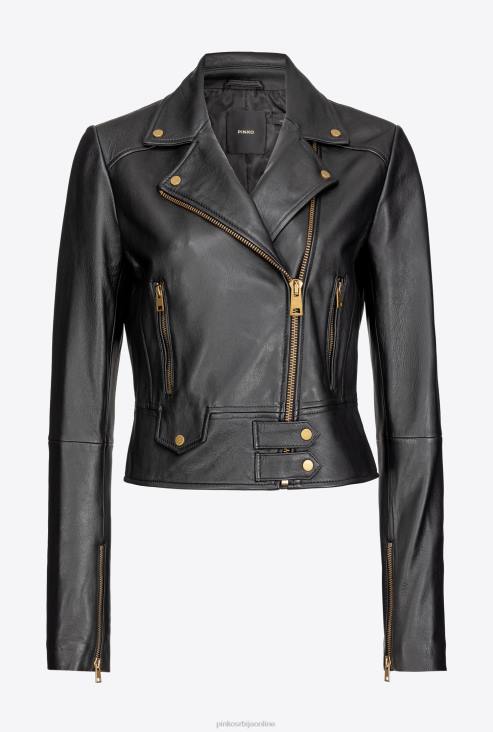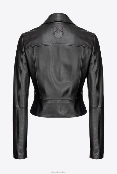цасуал јакне | Pinko лимузина црна напа кожна бајкерска јакна JFH4841