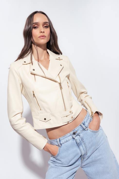 бајкерска јакна од напа коже, са металним дугмадима на врату. џепови са металним патентним затварачем, језичци са дугметом на манжетнама и рукави са патент затварачем и језичком на крају. подстава од тканине и златни окови. асиметрично копчање на патент затварач. ова одећа је направљена од материјала произведених у штављењу који промовишу производњу усклађену са животном средином и одрживе пословне праксе. - модел је висок 178 цм и носи величину 40.
