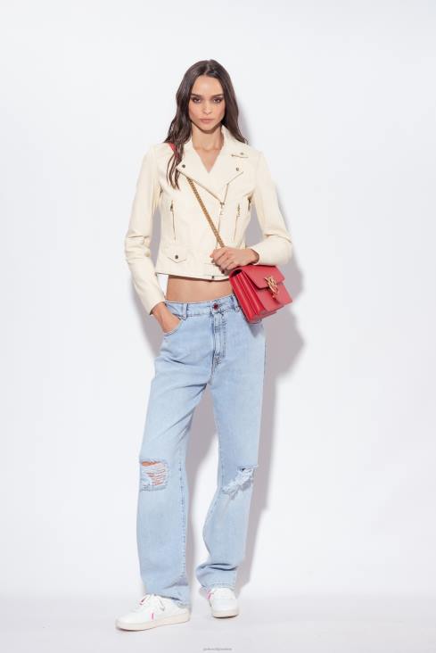 цасуал јакне | Pinko ружичасти дим бели напа кожна бајкерска јакна JFH4832