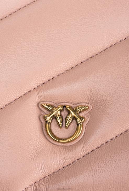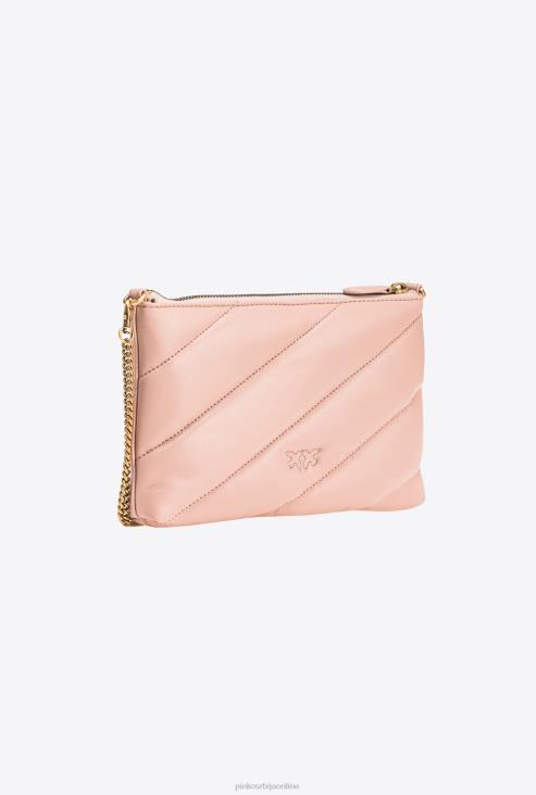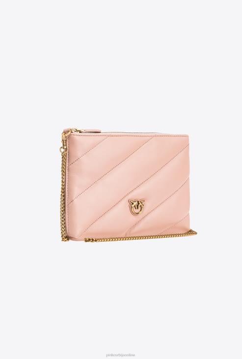 цроссбоди багс | Pinko прашњаво розе-античко злато равна торба од прошивене напа коже JFH41194
