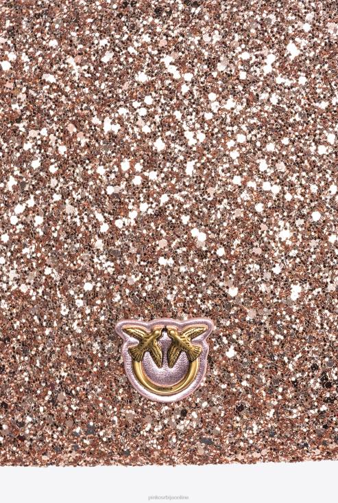 цроссбоди багс | Pinko прашњаво розе-античко злато светлуцава класична равна љубавна торба JFH41200