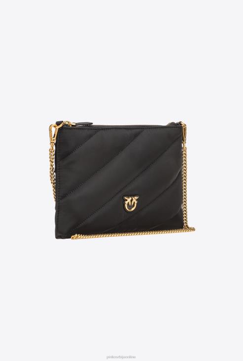 цроссбоди багс | Pinko црно-античко злато рециклирана равна торба JFH41273