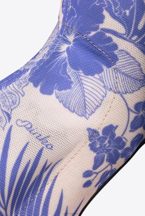 глежњаче од плетене растезљиве мрежасте тканине, са украсним цветним принтом. сужени прст и кожни ђон са штиклом од 10 цм. подстављени уложак.