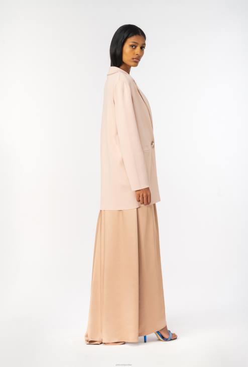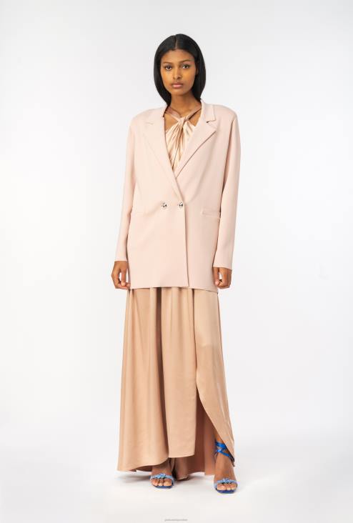 лагани превелики блејзер од техничке милано прошивене вискозне тканине. крагна са ревером, структурирана рамена, дуги рукави и џепови са преливом. двоструко копчање са металним дугмадима.